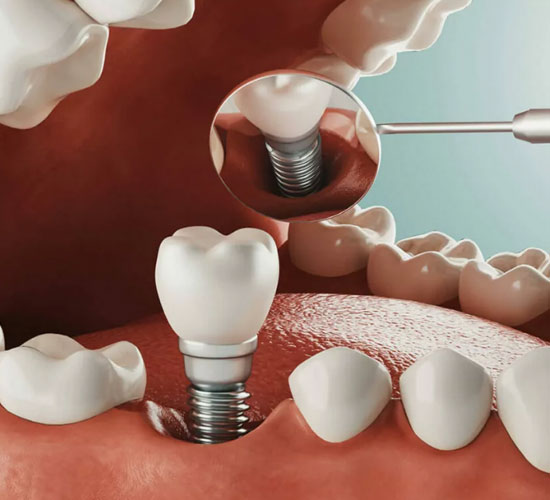 Dental implant surgery is a procedure that replaces tooth root with metal. screw like posts & replaces damaged or missing teeth with artificial teeth that look and function much like real ones.